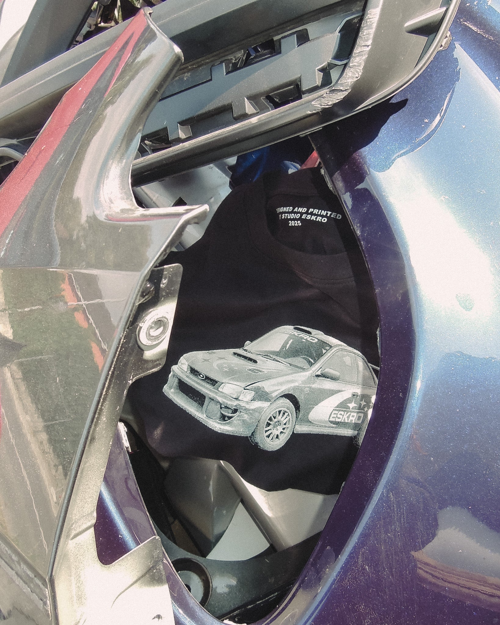 La Subaru Impreza 22B STI, entre contrôle et rupture. Figée dans l'instant où tout bascule.